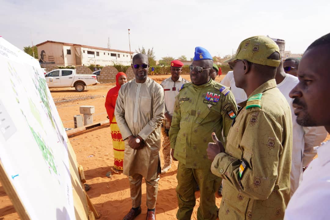Le Directeur Général de l’Agence de Modernisation des Villes du Niger (AMV) et le Ministre de la Jeunesse, des Sports, des Arts et de la Culture, porte-parole du Gouvernement ont effectué une visite de terrain ce matin pour constater de visu le démarrage des travaux de construction d'un complexe sportif situé au Village de la Francophonie.